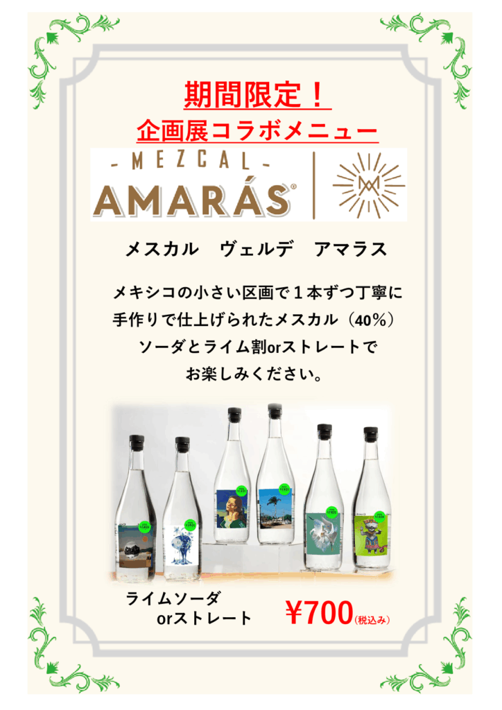 彼が最も触発されたメキシコのお酒『メスカル(Mezcal)』を期間限定で販売します。